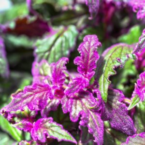The Gynura aurantiaca, also known as the Purple Passion Velvet, is a captivating houseplant that belongs to the sunflower family. It features striking purple hairs that give the dark green leaves a velvety texture, making it a unique addition to your indoor garden.