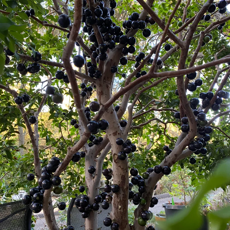 Jaboticaba Plant – A unique fruit tree! Black Jaboticaba variety offers delicious, grape-like fruits growing on the trunk. No ship to CA.