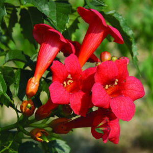 Thriving in average soil, the Trumpet Vine grows best in full sun to partial shade. With a mature height of up to 15 feet, it can easily cling to various garden structures, creating stunning vertical displays. For optimal growth, prune back in early spring to promote new growth and abundant blooms.