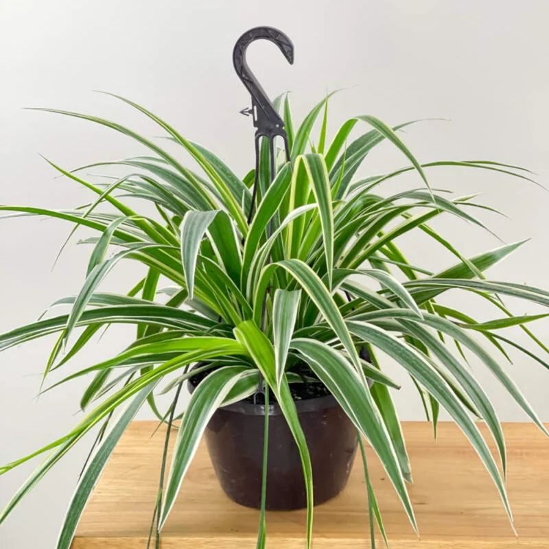 This popular houseplant is incredibly easy to care for, making it an excellent choice for those new to indoor gardening. The Variegated Spider Plant thrives in a variety of conditions and requires minimal attention to flourish. Its air-purifying qualities help to improve the indoor environment by removing common toxins, contributing to a healthier and more comfortable living or working space. It actively combats pollutants like formaldehyde and xylene, promoting cleaner air. It’s a natural air filter that looks good doing it!